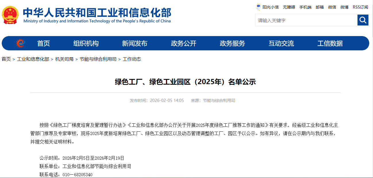 Em 5 de fevereiro de 2026, a lista pública do Sistema de Manufatura Verde de 2025 foi oficialmente divulgada.