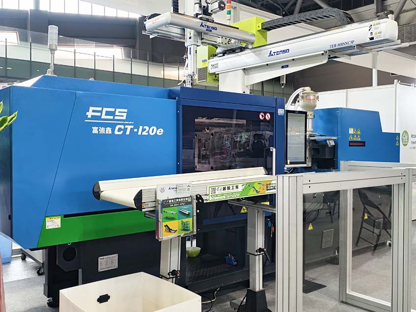 A máquina de moldagem por injeção totalmente elétrica CT-120e apresenta controle de alta precisão e desempenho com eficiência energética, tornando-a ideal para aplicações que exigem qualidade estável, como componentes de TIC. Demonstrações ao vivo de produtos de armazenamento empilháveis destacaram a estabilidade do processo.